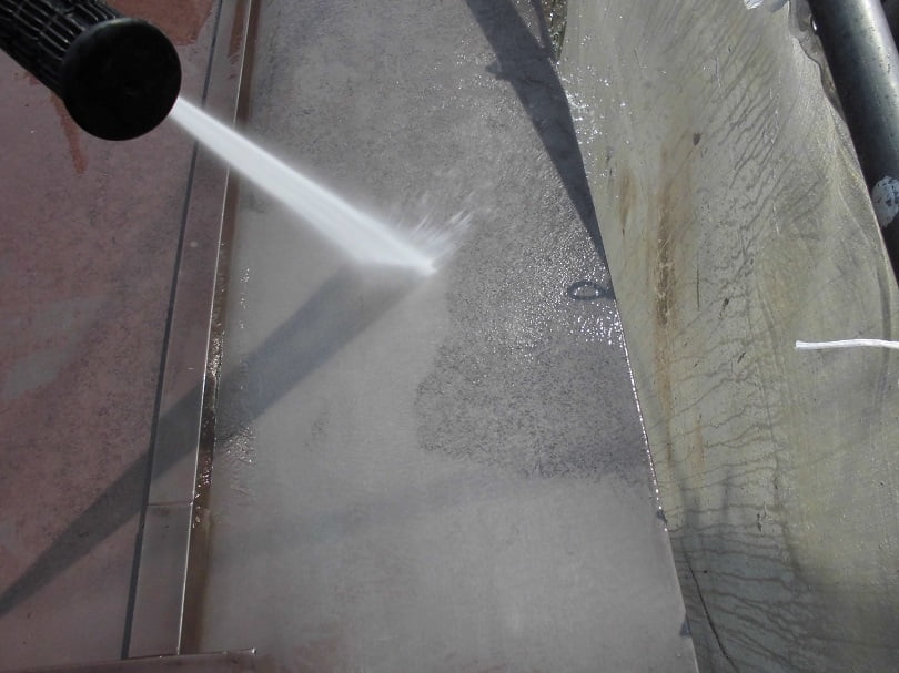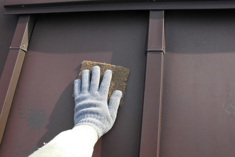 全体を高圧洗浄できれいにした後、鉄部のサビが多く目立っているので